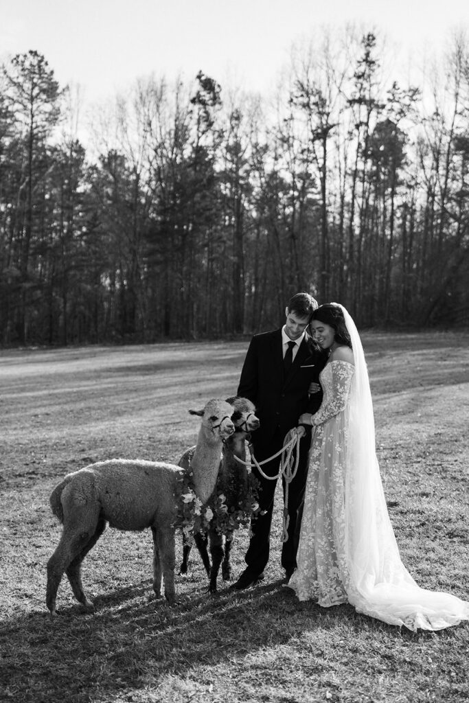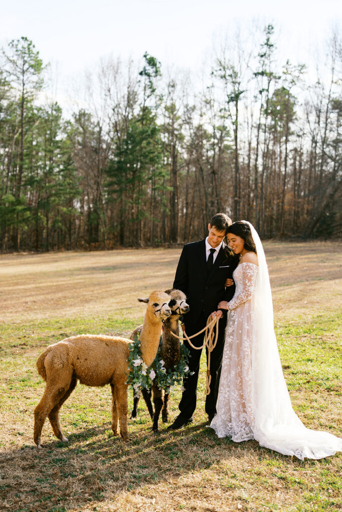 Yes, you read that right — alpacas! This couple at Intertwined Acres in Greenville, South Carolina had the most unique and adorable southern touch with alpacas on site and it was honestly the best thing ever!! If you are looking for a one of a kind wedding venue in Upstate South Carolina, Intertwined Acres in the Greenville SC area needs to go straight to the top of your list.