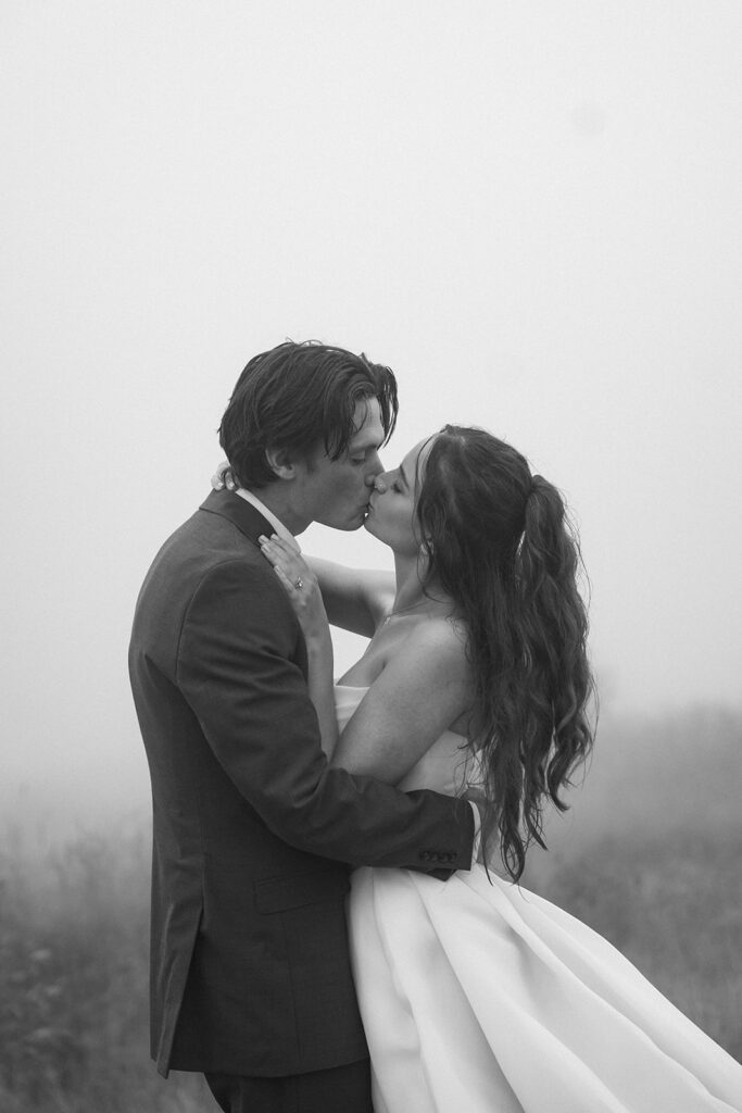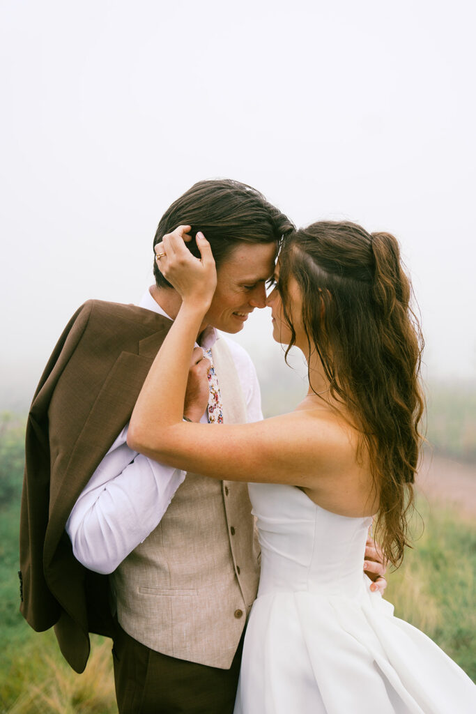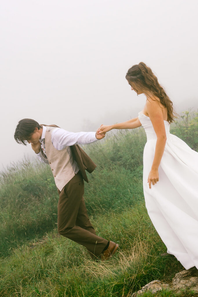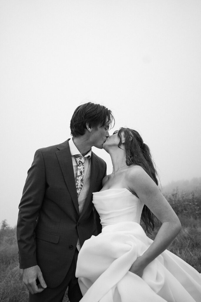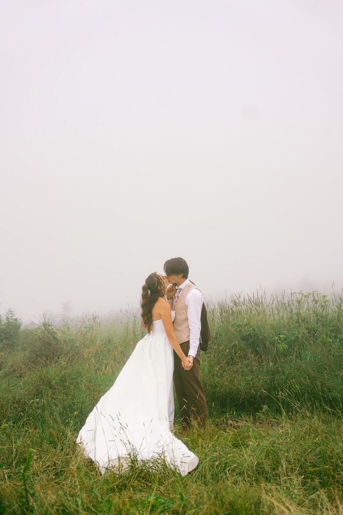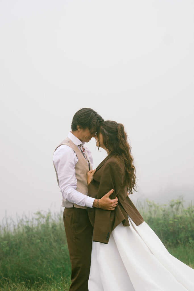 If moody, foggy mountain portraits are your thing, this Black Balsam wedding session on the Blue Ridge Parkway in Western North Carolina is about to be your favorite!! The fog rolled in and honestly made everything look like a dream — in the best possible way.