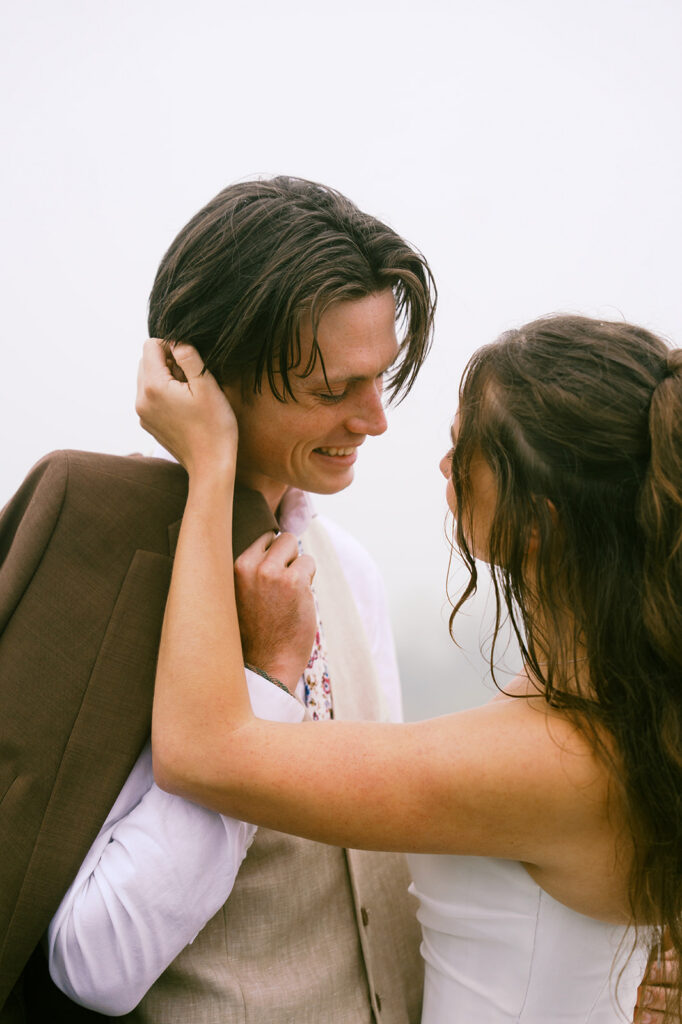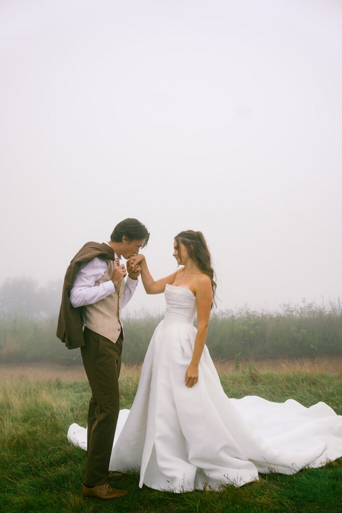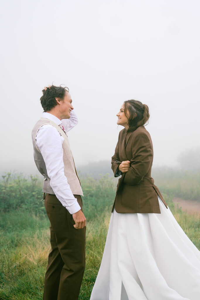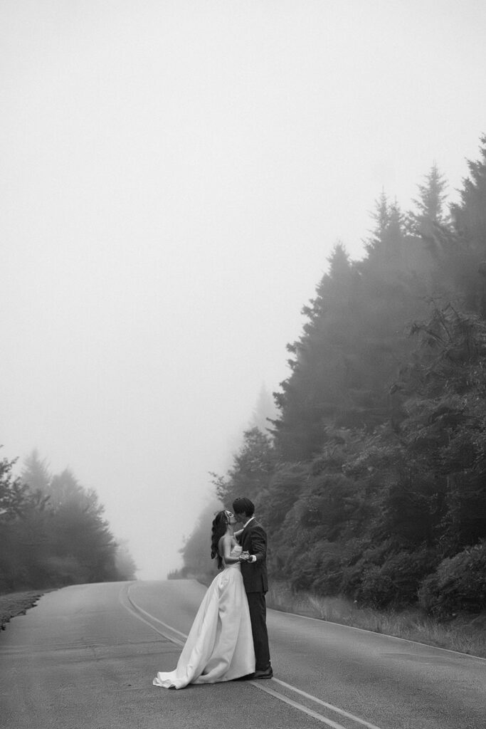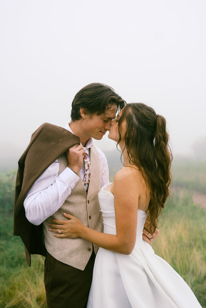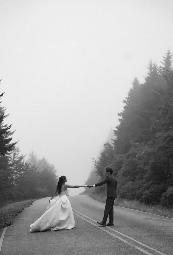 If moody, foggy mountain portraits are your thing, this Black Balsam wedding session on the Blue Ridge Parkway in Western North Carolina is about to be your favorite!! The fog rolled in and honestly made everything look like a dream — in the best possible way.