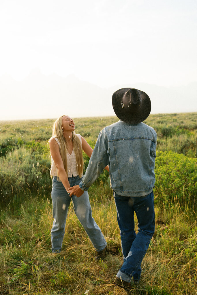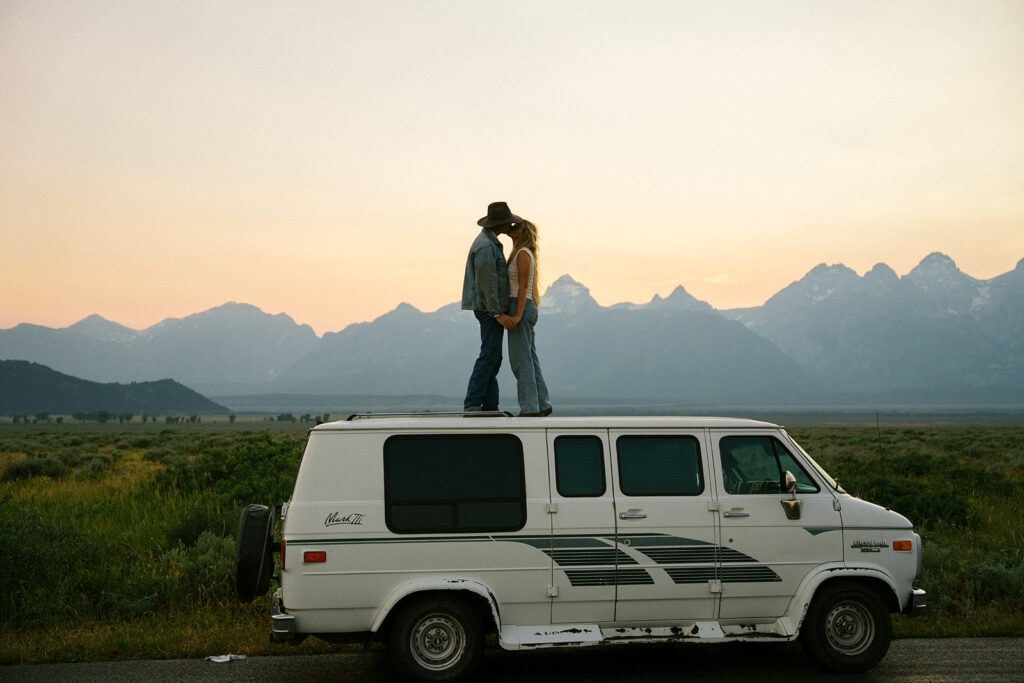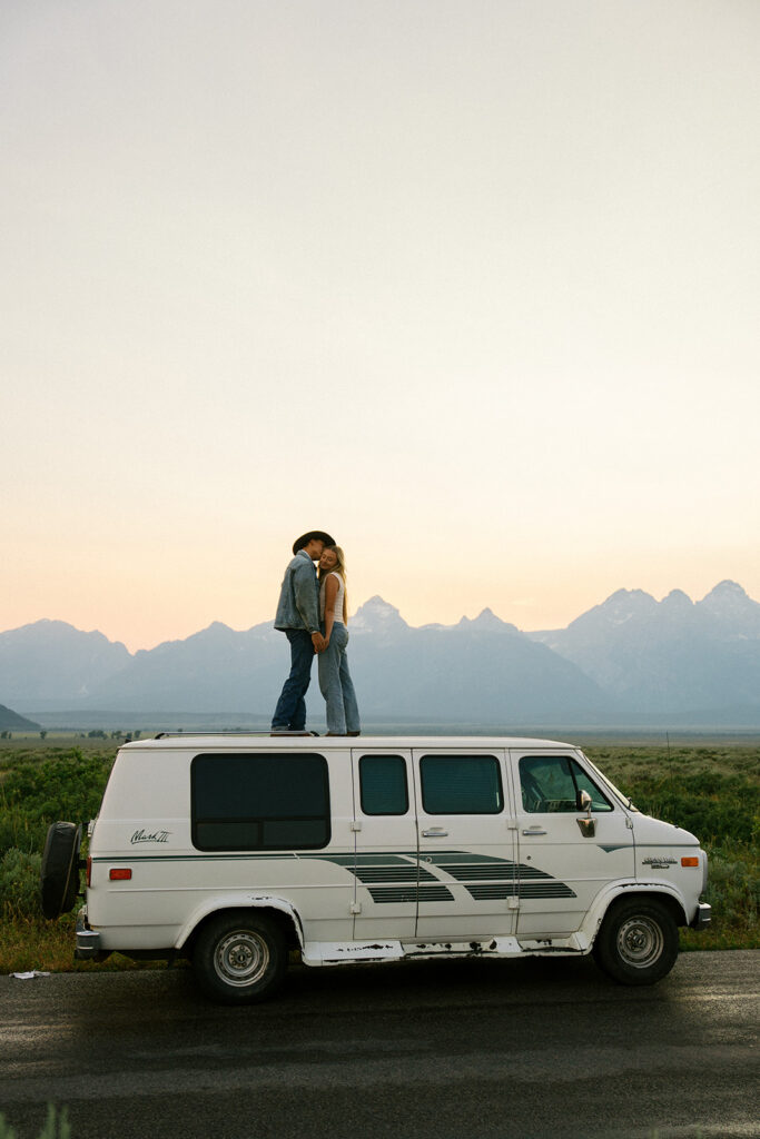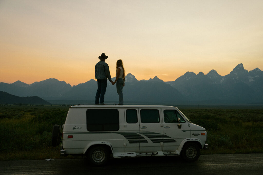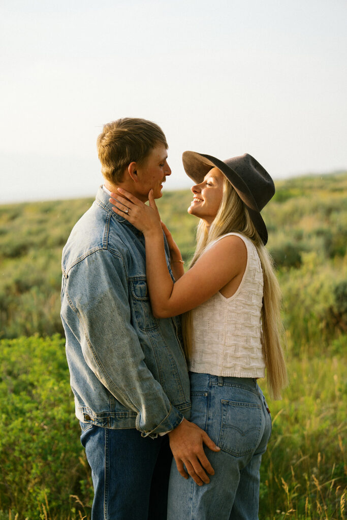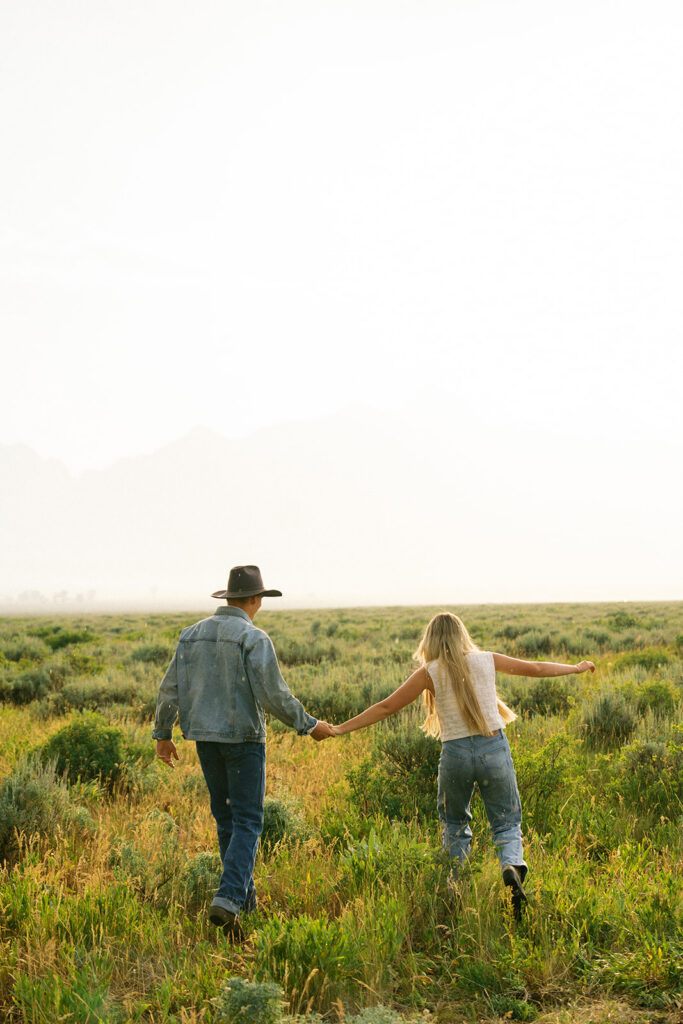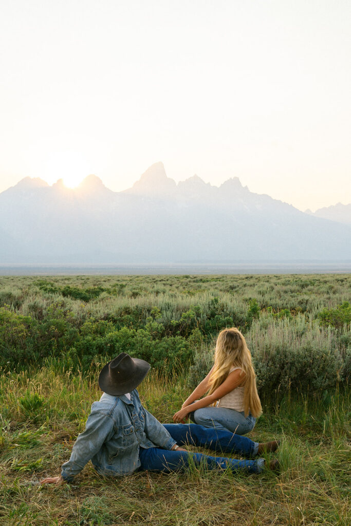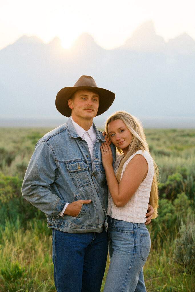 The Tetons at sunset with your favorite person? Honestly does not get better than that. This golden hour couples engagement session in Grand Teton National Park, Wyoming was full of beautiful light, big mountain views, and all the good vibes. If you are planning an engagement session in the Jackson Hole Wyoming area this is your sign to chase that sunset.